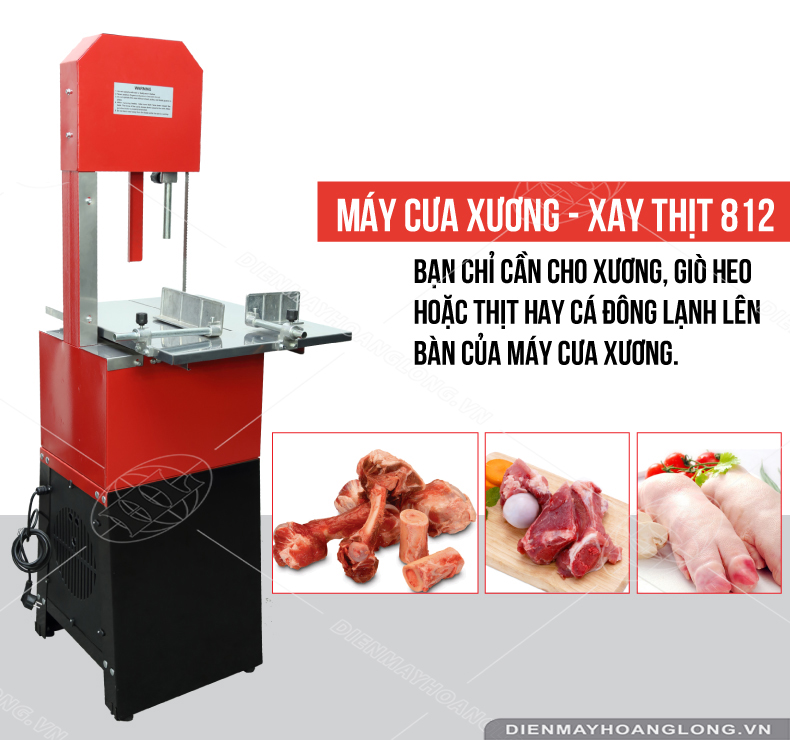 MÁY CƯA XƯƠNG, XAY ĐÙN THỊT 812 Thông số kỹ thuật: Modem: 812 Motor: 220V~/50Hz 550W Max. Cutting Depth: 240mm Max. Cutting Width: 250mm Blade no-load Speed: 4.4m/s HƯỚNG DẪN THAY LƯỠI CƯA,VỆ SINH MÁY VÀ PHÂN BIỆT LƯỠI. Mua sản phẩm này